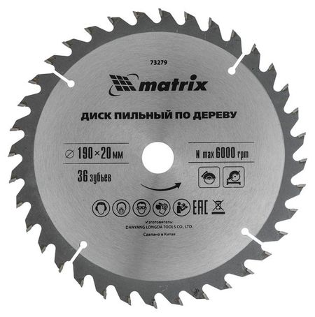 Пильный диск по дереву Matrix ф190 х 20 мм 73279 с 36 зубьями и переходным кольцом 20/16 применяется в качестве оснастки на циркулярных и торцовочных пилах с соответствующим внутренним и внешним диаметром. Он используется для продольного/поперечного реза материалов из мягкой и твердой древесины, ДСП, ДВП, фанеры, столярных плит. В комплект входит переходное кольцо 20/16 для возможности самостоятельного изменения посадочного диаметра при необходимости.