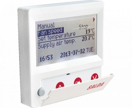 Дистанционный пульт управления Salda (Сальда) Flex выпускается в пластиковом корпусе, оснащен монохромным дисплеем и кнопками управления. Данная модель совместима с приточными установками и ветиляторами Salda. Модель обеспечивает регулировку режимов работы, скоростб вращения вентилятора, установку температуры.