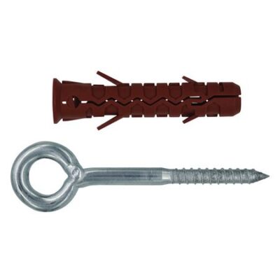 Тип: дюбель с шурупом-кольцо Диаметр дюбеля: 14мм Длина дюбеля: 70мм Диаметр шурупа: 12мм Длина шурупа: 120мм Материал дюбеля: нейлон Материал шурупа: оцинкованная сталь Количество в упаковке: 1шт