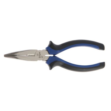 Длинногубцы изогнутые ТУНДРА, CrV, никелированные, двухкомпонентные рукоятки, 160 мм. Длинногубцы марки TUNDRA – применяются для сгибания и разгибания пластин, проволоки, прутков, но в отличие от классических плоскогубцев имеют тонкие и длинные кончики, для выполнения более точной работы и захвата мелких деталей. Эргономичные двухкомпонентные противоскользящие рукояти обеспечат удобство во время использования. <b> Преимущества длинногубцев изогнутых TUNDRA:</b> <ul> <li> Работа в труднодоступных местах благодаря изогнутым губкам;</li> <li> Работа с мелкими деталями;</li> <li> Никелированная поверхность;</li> <li> Качественная сталь CrV;</li> <li> Двухкомпонентные рукояти.</li> </ul>