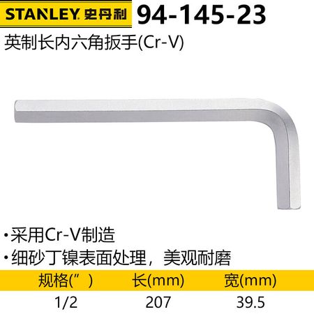 Длинный внутренний шестигранный ключ Stanley British, шестигранная отвертка с внутренним шестигранником, Г-образный ключ 94-145-23