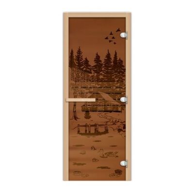 Для бани и сауны Fireway 1,9х0,7 стекло Банька в лесу бронза 8 мм матовое