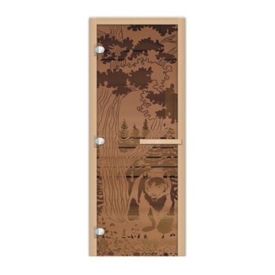 Дверь для бани и сауны Fireway (Фаервэй) 1,9х0,7 стекло Мишка в лесу бронза 8 мм матовое ЛЕВАЯ отличается оригинальным оформлением дизайна с изображением забавного мишки в лесной чаще. Такой элемент декора позволит создать в парной атмосферу уюта и комфорта. Изделие отличается высокой прочностью и долговечностью. Оно устойчиво к воздействию высоких температур, влаги и пара.