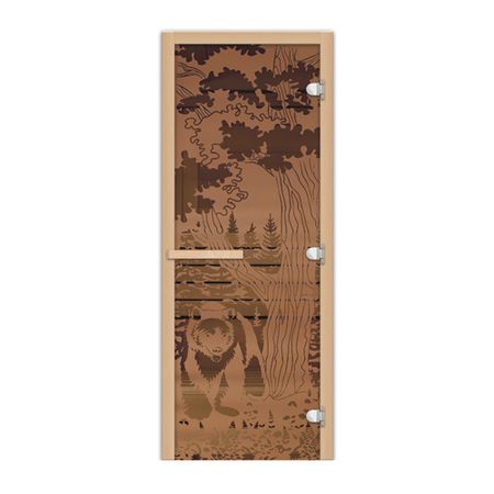 Дверь для бани и сауны Fireway (Фаервэй) 1,9х0,7 стекло Мишка в лесу бронза 8 мм матовое отличается особой прочностью и отменным качеством исполнения. Данное изделие не боится высоких температур и влажности. Дверь имеет очень привлекательный внешний вид, который будет радовать глаз. В комплекте с дверцей поставляется замок и ручка.