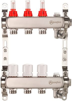 Коллектор из нержавеющей стали Aquasfera (Аквасфера) 1″ ВР/ВР 3 вых 3/4″ НР (9501) используется в отопительных системах. Равномерное распределение и точная настройка теплоносителя повышает эффективность работы и продлевает срок эксплуатации. Надежное и долговечное изделие с универсальным спектром использования.