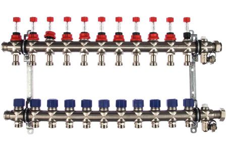Для отопления Elsen Коллекторная группа, 1″, 12 контуров, размер отвода-3/4″, с вентилями и расходомерами, нержавеющая сталь