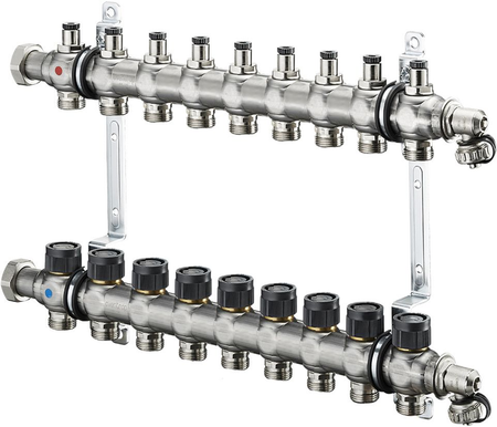 Серия Multidis SF от немецкого производителя Oventrop включает в себя распределительные коллекторы для панельного отопления и охлаждения. Все они изготовлены из нержавеющей стали, обеспечивающей им длительный срок эксплуатации. В серию вошли две разновидности коллекторов: со встроенными ротаметрами и со встроенными регулирующими вставками. Также изделия отличаются по количеству контуров (от 2 до 12).