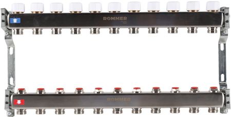 Коллекторные группы российской торговой марки Rommer серии RMS-3200 используются в жилых и административных зданиях для создания многоконтурной системы отопления. В линейку входят модели с возможностью создания от 2 до 12 независимых линий подачи теплоносителя. Коллекторы поставляются с регулирующими и запорными клапанами.