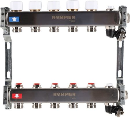 Коллекторные группы российской торговой марки Rommer серии RMS-3201 играют важную роль для создания многоконтурной системы отопления в зданиях жилого или административного типа. Оборудование может иметь от 2 до 12 раздельных контуров. На подающем и обратном коллекторах установлены воздухоотводчики и спускные краны.