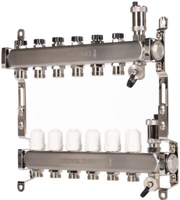 Серия Optimal российского бренда Royal Thermo представлена широким ассортиментом моделей коллекторов для отопления. Можно выбрать как универсальные коллекторы, так и, снабженные расходомерами. Каждая модель изготовлена из нержавеющей стали, устойчивой к высоким механическим нагрузкам и действию коррозии.