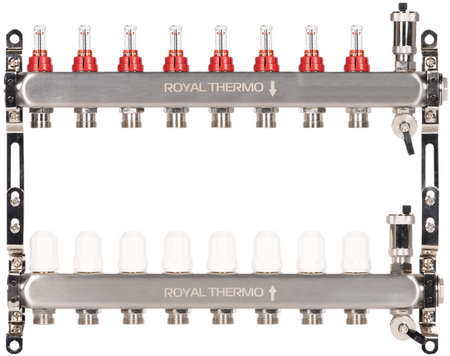 Для отопления Royal Thermo 1″ ВР-3/4″ НР, 8 выходов с расходомерами, нерж. (RTO 52.208)