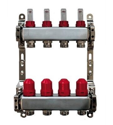 Stahlmann (Штальманн) Коллектор 1″х 3/4″ 10 вых., нерж. измеряет параметр, на который они настроены. Информация, полученная расходомерами, поступает в систему управления клапанами, и при их открытии смешиваются потоки теплоносителя под контролем. По заданным условиям они обеспечивают интенсивность теплого пола.