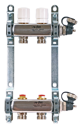 Коллекторные группы Uni-Fitt предназначены для распределения и регулирования потоков теплоносителя в низко- или высокотемпературных системах отопления. Оснащены регулирующими и термостатическими вентилями (с возможностью установки термоэлектрических приводов) на обратном коллекторе.