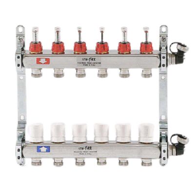Коллекторные группы Uni-Fitt предназначены для распределения и регулирования потоков теплоносителя в низко- или высокотемпературных системах отопления. Оснащены регулирующими и термостатическими вентилями (с возможностью установки термоэлектрических приводов) на обратном коллекторе.