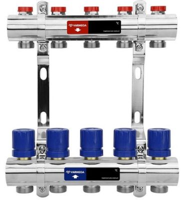 Серия коллекторов VM158 предлагает потребителю широкий ассортимент моделей с количество рабочих контуров от 2 до 13. Каждая коллекторная группа отвечает всем требованиям современных стандартов качества и безопасности и позволяет эффективно распределять потоки теплоносителя всевозможных приборов отопления.