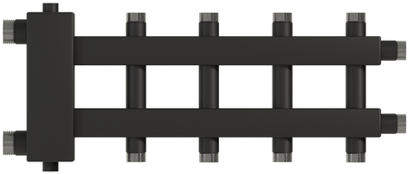 Коллектор Warme (Варме) WKD.R.60.2+2+1 оборудован 5 контурами и изготовлен из высокопрочной черной стали. Все детали коллектора дополнены антикоррозионным покрытием, что гарантирует ему долгий срок службы даже при условиях высокой влажности воздуха в котельной. Межосевое расстояние между коллекторами равняется 125 мм.