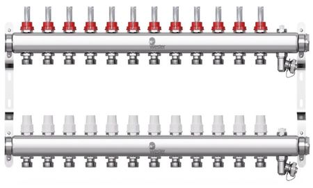 Коллектор из нержавеющей стали Wester (Вестер) 1″-3/4 в сборе с расходомерами на 12 выходов разработан для обеспечения равномерной циркуляции теплоносителя между всеми подключенными контурами. Подходит для радиаторов и низкотемпературных систем водяного отопления (теплый пол). Корпус из нержавеющей стали гарантирует долговечность и надежность.