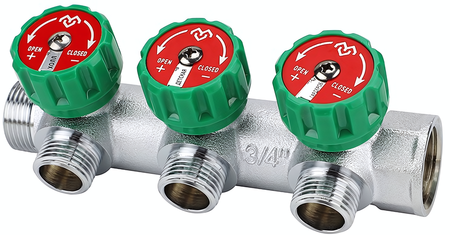 Распределительные коллекторы поставляются с размером основной магистрали 3/4″ или 1″ и могут иметь два, три или четыре выхода с наружной резьбой 1/2″ или 3/4″.