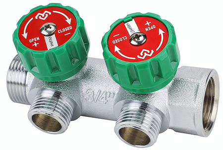 Распределительные коллекторы поставляются с размером основной магистрали 3/4″ или 1″ и могут иметь два, три или четыре выхода с наружной резьбой 1/2″ или 3/4″.