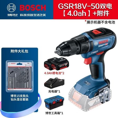 Дрель аккумуляторная Bosch GSR 18V-50 + два аккумулятора 18V/4.0Ah, зарядное устройство, ящик для инструментов