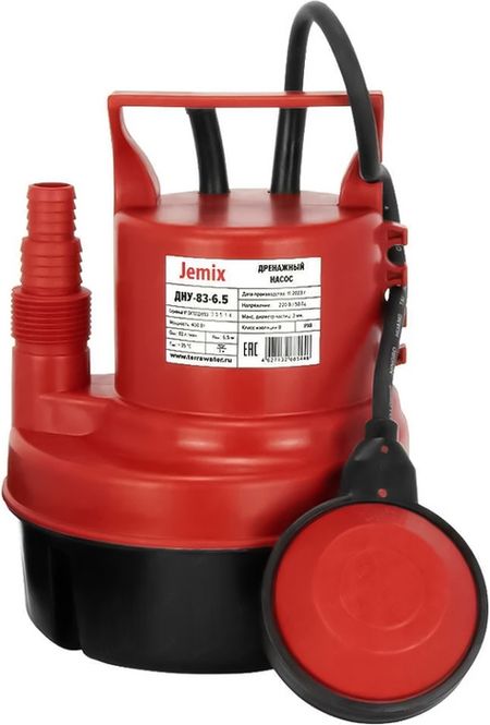 Дренажный насос Jemix (Джемикс) ДНУ-83-6,5 производится в пластиковом корпусе, что обеспечивает минимальный вес и простоту эксплуатации. Конструкция изделия позволяет перекачивать воду при её уровне от 2 мм от дна емкости, а поплавковый выключатель предотвратит работу двигателя без воды в корпусе.