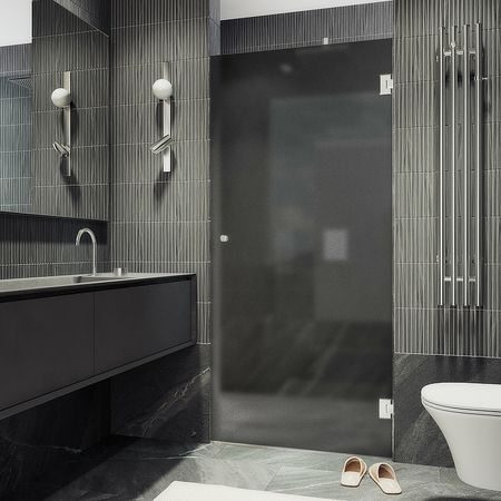 Исполнение полотна двери: графитовое матовое закаленное стекло, толщиной 8 мм.