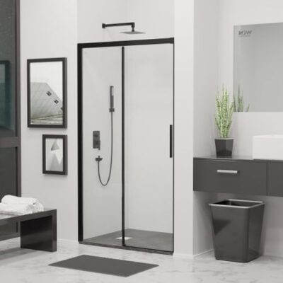 Душевая дверь с закаленным прозрачным стеклом 6 мм, с роликовым механизмом оснащенные автодоводчиком. Поддон приобретается отдельно.