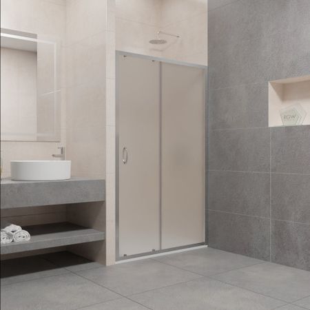 Душевая дверь состоит из 2-х секций, одно неподвижное стекло и раздвижная дверь от стены. Трап или поддон приобретается отдельно.