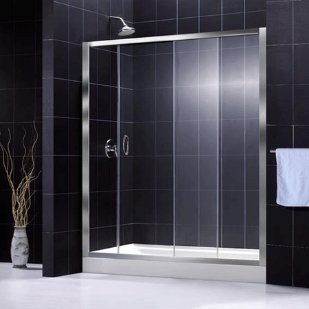 Состоит из 2-х секций, одно неподвижное стекло и раздвижная дверь
