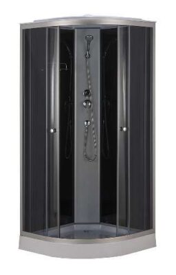 Душевая кабина Arcus Ecostyle ES-312GWP 90х90. Душевая кабина Arcus на низком поддоне. Форма — четверть круга. Дизайн: фронтальные стекла тонированные, алюминиевый профиль. Регулируемые ролики. Две раздвижные двери. Функциональное оснащение: смеситель, верхний душ, ручная лейка. Гарантия 1 год.