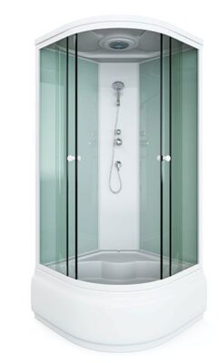 Душевая кабина Arcus style S-22, 90 х 90 х 215 см, двери — матовые фактурные, задние стекла — белые матовые Основные характеристики: поддон акриловый белый высокий 45 см фронтальные стекла: матовые фактурные задние стекла: белые матовые задняя панель белый пластик белый алюминиевый профиль регулируемые ролики белые ручки для дверей 2-х режимный смеситель, ручная лейка слив перелив с сифоном крыша с верхней лейкой