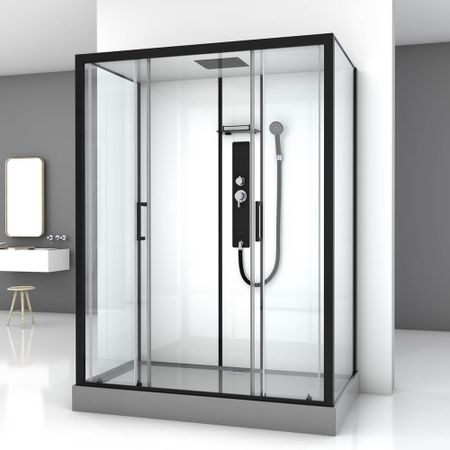 Душевая кабина Black&White G8010 (850X1600X2150). Cтекло нового поколения «Super White» – белое стекло высочайшего качества, с применением в качестве исходного материала стекла Optiwhite от Pilkington (Англия). Закаленное стекло 6 мм. Черный матовый профиль. Акриловый поддон в сером цвете высотой 150 мм. Усиленный гладкий шланг лейки. Надежные стальные ручки