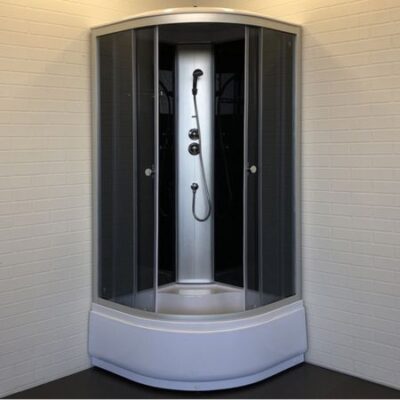 Характеристики:Габаритные размеры (ДхШхВ) — 900x900x2150 ммПрофиль – хромированный алюминийЛицевые стекла – закаленное тонированное стекло, толщиной 4 ммЗадние стенки – черная панель из закаленного стеклаВысокий поддон – ABS пластик, белого цвета, четверть кругаКомплектация:Две раздвижные створки с магнитным профилемДвухрежимный смесительВерхний душРучной душДвойные ролики сверху и снизуСифон с донным клапаном