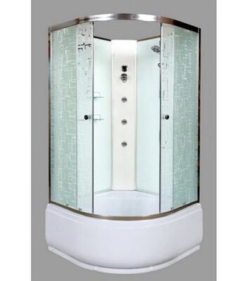 Кабина имеет усиленный акриловый поддон высотой 45 см с антискользящим покрытием. Плавность хода дверей обеспечена благодаря двойным саморегулирующимся металлическим роликам. Сифон имеет гидрозатвор. Характеристики: без крыши; литое сиденье; вертикальный гидромассаж — 3 форсунки; передний съемный экран поддона; сборка без силикона; резьбовые соединения всех шлангов; усиленный акриловый поддон; антискользящее покрытие поддона; двойные металлические ролики (верхние и нижние) в пластиковом антикоррозийном кожухе; штанга для ручного душа.