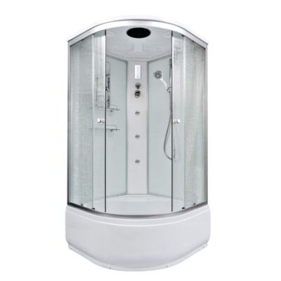 Кабина имеет усиленный акриловый поддон высотой 45 см с антискользящим покрытием. Плавность хода дверей обеспечена благодаря двойным саморегулирующимся металлическим роликам. Сифон имеет гидрозатвор. Характеристики: литое сиденье; вертикальный гидромассаж — 3 форсунки; вентиляционные отверстия в крыше; передний съемный экран поддона; сборка без силикона; резьбовые соединения всех шлангов; усиленный акриловый поддон; антискользящее покрытие поддона; двойные металлические ролики (верхние и нижние) в пластиковом антикоррозийном кожухе; штанга для ручного душа.