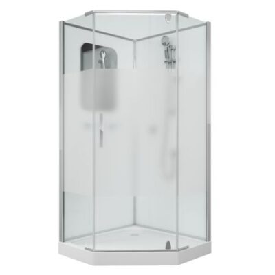 Многогранная душевая кабина Grossman GR-171D с габаритами 90 на 90 см устанавливается в угол помещения ванной комнаты, не занимая много места и не выглядя громоздкой благодаря своей форме и лаконичному дизайну, в котором сочетаются идеальный белый цвет и серебристые поверхности профиля, душевого набора, ручки двери и других элементов.