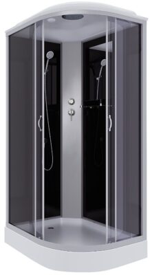 Профиль выполнен в матовом варианте, стенки — черные, а двери кабины — тонированные. Из аксессуаров, в кабине нет ничего, кроме полки. Дополнительные аксессуары можно использовать на присосках.