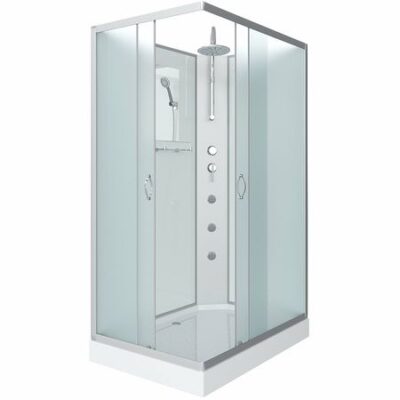 Оснащение: зеркало, полочка, ручной душ, верхний душ.