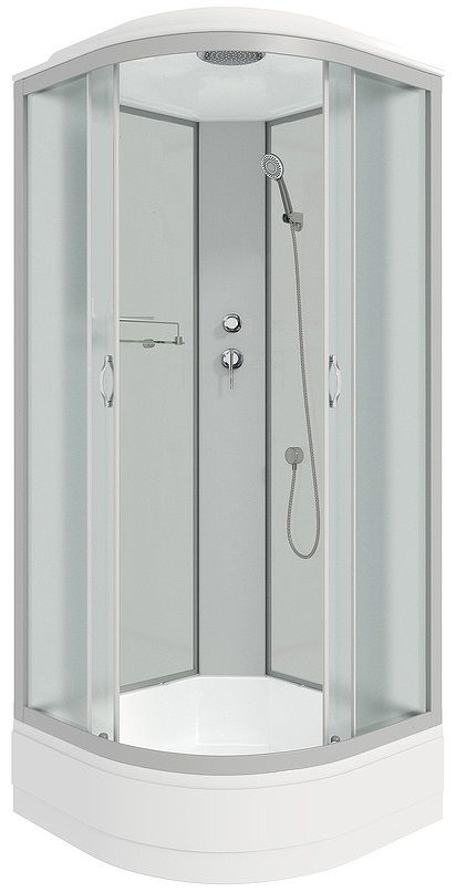 Профиль выполнен в хромированном или матовом варианте, стенки и двери кабины — матовые. Из аксессуаров, в кабине нет ничего. Можно использовать аксессуары на присосках.