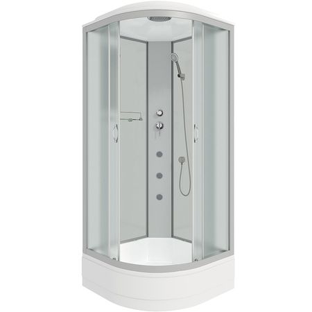 Профиль выполнен в хромированном или матовом варианте, стенки и двери кабины — матовые. Из аксессуаров, в кабине нет ничего. Можно использовать аксессуары на присосках.