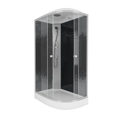 Душевая кабина Niagara NG 4512-14L расположение в левом углу, тонированного цвета, с рисунком Мозайка. Имеет низкий поддон с антискользящим покрытием, кабинка укомплектована тропическим душем и дополнительной лейкой. Это самая простая и недорогая душевая кабина, установить ее можно на даче, в бане, сауне и загородном доме. Кабина крепкая изготовлена из акрила и каленого стекла 5 мм.