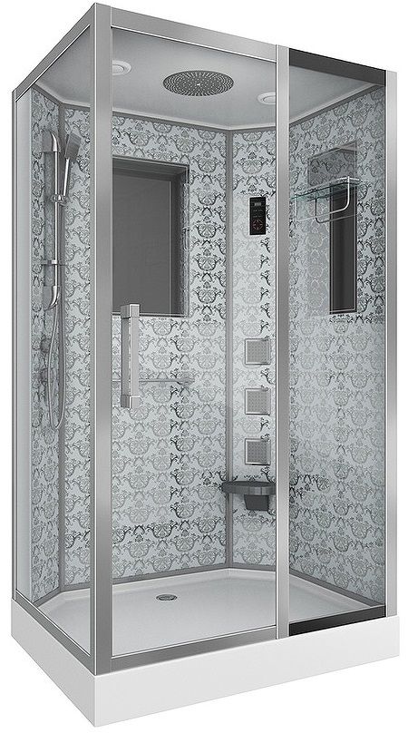 Кабина снабжена системой гидромассаж — 3 форсунки. Откидное сидение.