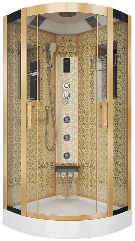 Душевая кабинка Ниагара Люкс 7715 G жемчужный занавес золотой рисунок, система открытия дверей раздвижные, прозрачные!