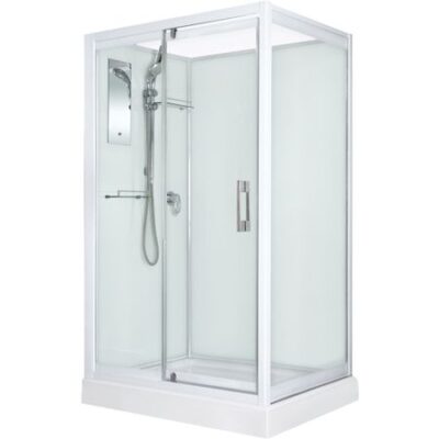 Душевая кабина River Tana 120×90 Б/К 10000001874 превосходно сочетается в интерьере любой стилистической направленности за счет изысканных форм и плавных линий. Полотно двери выполнено из закаленного стекла толщиной 6 мм. Кабина оснащена зеркалом, двумя стеклянными полочками и ручным душем.