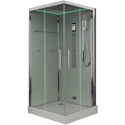 Технические характеристики Длина 100 Ширина 100 Высота 220 Ориентация Нет Форма Квадратная Материал задних стенок Стекло Материал поддона Акрил Конструкция дверей Раздвижные Толщина стекла 8 Цвет стекл Прозрачное Цвет акрила Белый Количество створок двери 2 Профиль Алюминиевый Цвет профиля Хром глянцевый Цвет задних стенок Белый Тип поддона Низкий Высота поддона 15 Гидромассаж 3 форсунки Массаж спины Есть Парогенератор Встроенный Мощность парогенератора 3 кВт Хромотерапия Есть, 7 цветов Аромотерапия — Электро питание 12V Вентиляция Есть Ручной душ Многофункциональный Верхний душ Тропический ливень Смеситель — Дисплей Сенсорный Телефон — Радио Есть Подключение CD — Полочки 1 полочка Верхний свет Есть Сифон С водяной пробкой Гибкая подводка В комплекте