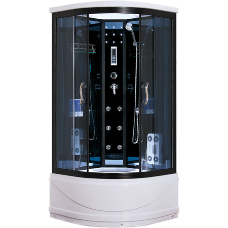 Душевая кабина Timo T-1190 Размеры 900х900х2200, высота поддона 450 мм, верхний душ (тропический ливень), декоративная боковая подсветка, встроенный однорычажный смеситель TIMO с четырехрежимным переключателем на верхний душ (TROPICAL RAIN), гидромассаж ступней, сенсорный пульт нового поколения TsCP с функциями включения/выключения, FM-радио, верхний и боковой свет, гидромассаж ступней, вентиляция, безопасное напряжение на выходе 12 V. 1 Подарки всем покупателям душевых кабин Технические характеристики Длина 90 Ширина 90 Высота 220 Ориентация Нет Форма Четверть круга Материал задних стенок Стекло Материал поддона Акрил Сиденье Одно стационарное Конструкция дверей Раздвижные Толщина стекла 5 Цвет стекл Тонированное Цвет акрила Белый Количество створок двери 2 Профиль Алюминеевый Цвет профиля Хром матовый Цвет задних стенок Черный Тип поддона Высокий Высота поддона 45 Гидромассаж 9 форсунок Массаж спины 9 форсунок Масажер ног Есть Парогенератор Опционально Мощность парогенератора 3 кВт Электро питание 12V Вентиляция Есть Ручной душ Многофункциональный Верхний душ Тропический ливень Смеситель Многофункциональный Дисплей Сенсорный Радио Есть Дозатор мыла 2 дозатора Полочки 1 полочка Верхний свет Есть Декоративная подсветка 9 диодов Сифон C изливом для наполнения ванны Гибкая подводка В комплекте