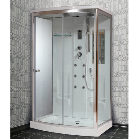 Душевая кабина T-7715 Размеры 1200х900х2200, высота поддона 150 мм, верхний душ (тропический ливень), современный сенсорный пульт управления, откидное сидение, раздвижные двери, FM-радио, вентиляция, безопасное напряжение на выходе 12 V. Подарки всем покупателям душевых кабин Технические характеристики Длина 120 Ширина 90 Высота 220 Ориентация Универсальная Форма Прямоугольная Материал задних стенок Стекло Материал поддона Акрил Сиденье Нет Конструкция дверей Раздвижные Толщина стекла 6 Цвет стекл Прозрачный Цвет акрила Белый Количество створок двери Одна Цвет задних стенок Белый Тип поддона Низкий Высота поддона 15 Гидромассаж 6 форсунок Массаж спины 6 форсунок Парогенератор Опционально Мощность парогенератора 3КВт Хромотерапия — Аромотерапия Опционально Электро питание 12V Вентиляция Есть Ручной душ Многофункциональный Верхний душ Тропический ливень Смеситель Многофункциональный Дисплей Сенсорный Телефон Нет Радио Есть Подключение CD Нет Полочки 1 стеклянная, 2 встроенные Верхний свет Есть Сифон С водяной пробкой Гибкая подводка В комплекте
