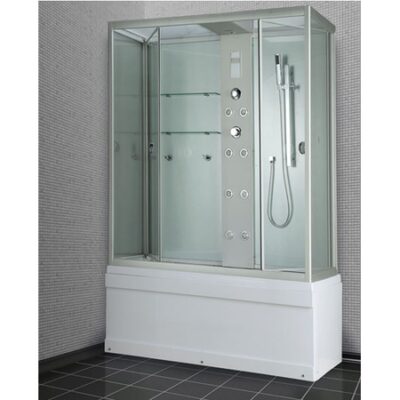 Душевая кабина Timo TL-1506 Размеры 1680х900х2200, прозрачные стекла, высота поддона 600 мм, верхний душ (тропический ливень), гидромассажная душевая стойка, встроенный однорычажный смеситель TIMO с четырехрежимным переключателем на верхний душ (TROPICAL RAIN), стеклянные полочки и крючки, радио, верхний свет, сенсорный пульт нового поколения TsCP с функциями включения/выключения, FM-радио, bluetooth, верхняя и боковая подсветка, вентиляция, безопасное напряжение на выходе 12 V. Подарки всем покупателям душевых кабин Баннер Код для заказа:TL-1506 Технические характеристики Длина 168 Ширина 90 Высота 220 Ориентация Нет Форма Прямоугольная Материал задних стенок Стекло Материал поддона Акрил Полноценная ванна Без аквариума Сиденье Одно откидное Конструкция дверей Раздвижные Толщина стекла 6 Цвет стекл Прозрачные Цвет акрила Белый Количество створок двери 2 Профиль Алюминиевый Цвет профиля Хром матовый Цвет задних стенок Бело-серебристые Тип поддона Высокий Высота поддона 60 Гидромассаж 4 форсунок Массаж спины 4 форсунок Масажер ног Есть Парогенератор Опционально Мощность парогенератора 3 кВт Гидромассаж в ванне Опционально 6 Jet Аэромассаж в ванне Опционально 6 Jet Массаж спины в ванне Опционально 3 Jet Электропитание 12V Вентиляция Есть Ручной душ Есть Верхний душ Тропический ливень Смеситель Многофункциональный Дисплей Сенсорный Радио Есть Дозатор мыла — Полочки 2 полочки Верхний свет Есть, светодиодные ленты Декоративная подсветка есть Сифон C изливом для наполнения ванны Гибкая подводка В комплекте