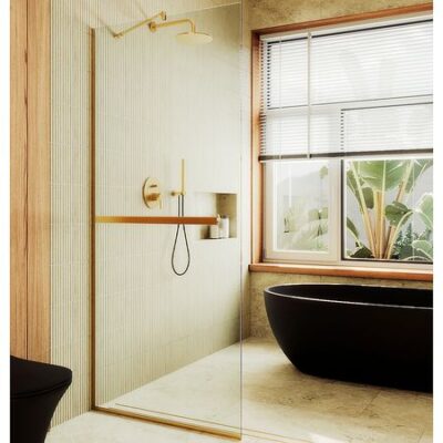 Душевая перегородка Maybah Glass MGD-708-3у 1090×1950 в узком профиле Золото стекло прозрачное