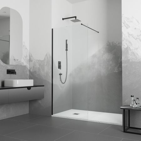 Душевая перегородка неподвижная. Длина кронштейна 1024 мм. Трап или поддон приобретается отдельно.